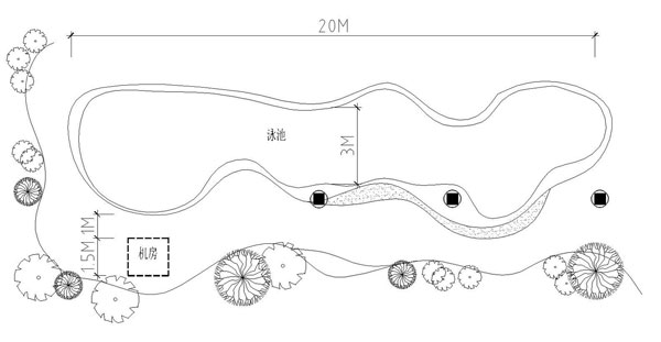 該泳池位于某高級住宅區的別墅庭院內,長20米,寬3米,淺端水深1.3米,深端1.7米,平均水深1.5米。整個工程由泳池和一個全地下式簡易機房組成,機房占地1.5*1.5米,高2.0米。設鋼爬梯上下,井口設不銹鋼蓋,方便開啟,可以容納所需設備。