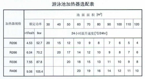 如果你的游泳池規(guī)格比表格所列規(guī)格大,可選用商用P型加熱器或多臺并用,可向鄭州泳潔專家咨詢。