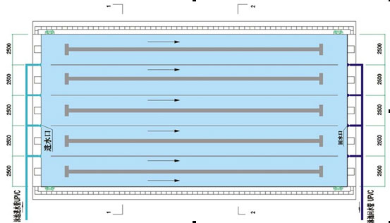 2、泳池寬度:根據游泳池設置的泳道數量確定。每條泳道的寬度根據游泳池的使用性質按下列規定確定: