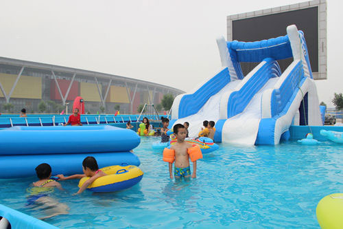 因此不管是長期流動水的泳池,水必須進行常態監控,清楚知道入水和池水水質情況。一定按情況適量定量補充新水是必要的。否則等到池體的水質變化嚴重,再投放新水也是效果不大。然后根據日常的變化情況,按照水質標準和管理技術要求作出對池水進行過濾、消毒、絮凝、除藻等處理。進行水消毒處理的常態過程就是把水內細菌殺滅和防止細菌生長,時刻把池水水質管理在一個衛生標準的狀態。但是還需要投資經營管理者理解的是,游泳池水處理分物理過程和化學過程兩部分,這兩個過程在游泳池水處理過程中缺一不可。物理過程是游泳池水通過循環游泳池水處理設備的過濾作用使池水得到凈化。化學過程是指在池水循環的同時加入化學藥劑對其進行消毒、絮凝、除藻等處理,再通過物理過程的作用使池水清潔又衛生。這兩個過程同時進行才能保證池水的水質達到國家標準。因此,這些過程方法同時需要投資經營客戶選擇好有專業水質管理知識的生產廠家,專業廠家會簡明快速地幫助指導投資經營客戶在短時間學會做好,快速幫助指導投資客戶投入正常經營管理。物理過程本應專業廠家在生產時就為客戶按照標準化科學合理做好。如果不知道水質管理知識,那是根本不知道做的。提醒投資經營客戶,不要做投石問路,摸著石頭過河,因為這樣做你會遇到很多想不到的麻煩。切記。同樣道理,如果按照常規標準化做好了,水上樂園支架游泳池本身材質特性優點也會突顯,也會給游客、小朋友及家長賞心悅目、舒適開心的認同感。總的來說,水質管理標準規范堅持是最關鍵的。認真堅持,做得更好,以標準化常態管理才能為游客創造最好、最優質、最放心的水上游樂環境。