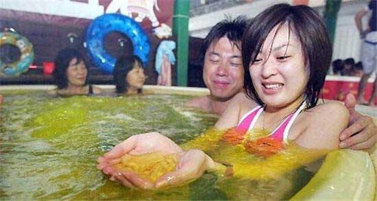 美國佛羅里達州著名的番茄浴,長期沐浴能讓人充分吸收番茄的營養(yǎng)成份。不過我想沐浴的時候會不會忍不住喝口番茄汁呢。