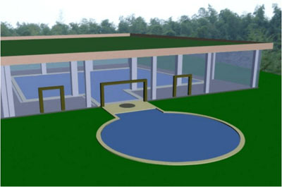 方案三:將成人池與兒童池徹底隔開,采用無(wú)機(jī)房過濾設(shè)備,成人池與兒童池分別安裝過濾設(shè)備,互不干擾,根本上解決冬季加熱問題。如圖:
