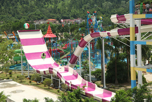 •     水上樂園設備:人沖天回旋水滑梯特別適合喜歡驚險、刺激的勇于挑戰的人群。 游客乘坐專用皮筏,從13米高平臺入口處下滑,經過一段螺旋引道后,如同太空飛船般俯沖而下,越過最低點后帶著巨大的慣性,沖向對面的爬坡滑板,并迅速爬升至最高點,體驗“沖天”的快感;驚魂甫定時,又在自身重力作用下快速回落,進入回收滑槽內,并再次經過半圓的回旋滑入落水池,體驗“回旋”的暈眩。